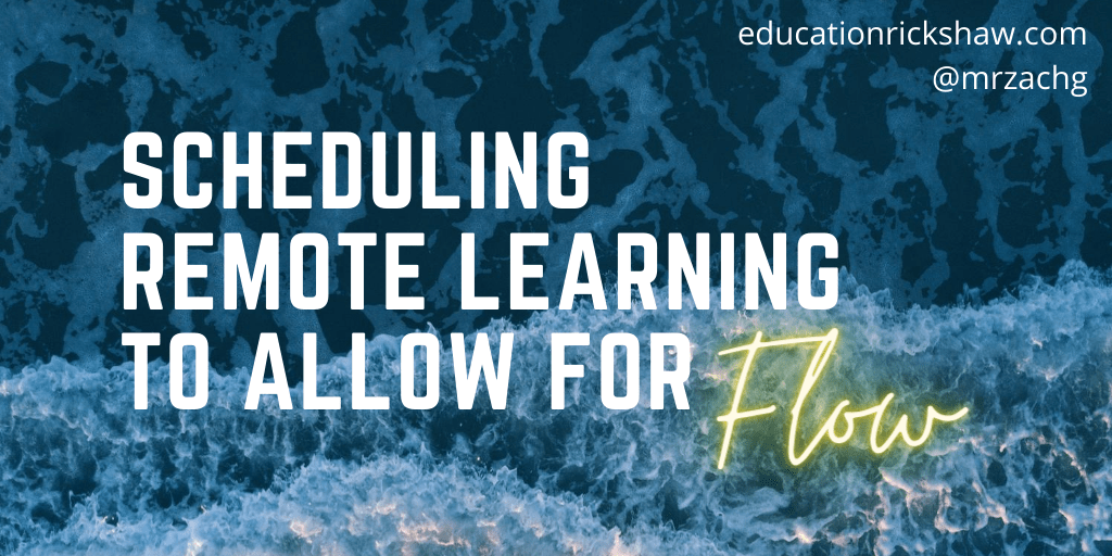 As a Director of Educational Technology and a dreamer, I hope we are being intentional in how we structure remote learning for the 2020-21 school year to allow for flow. Requiring students to sit in front of screens for class after class, for 7-8 hours of synchronous video conferencing in succession, seems to be the antithesis of Csikszentmihalyi’s conditions for flow. What the student experiences is a ride on a Zoom conveyor belt where the next thing doesn’t matter and the last thing’s already forgotten. There’s no time to get lost in one’s work, only an unending playlist of ego-depleting 55 minute episodes which never come back together to form a coherent narrative.