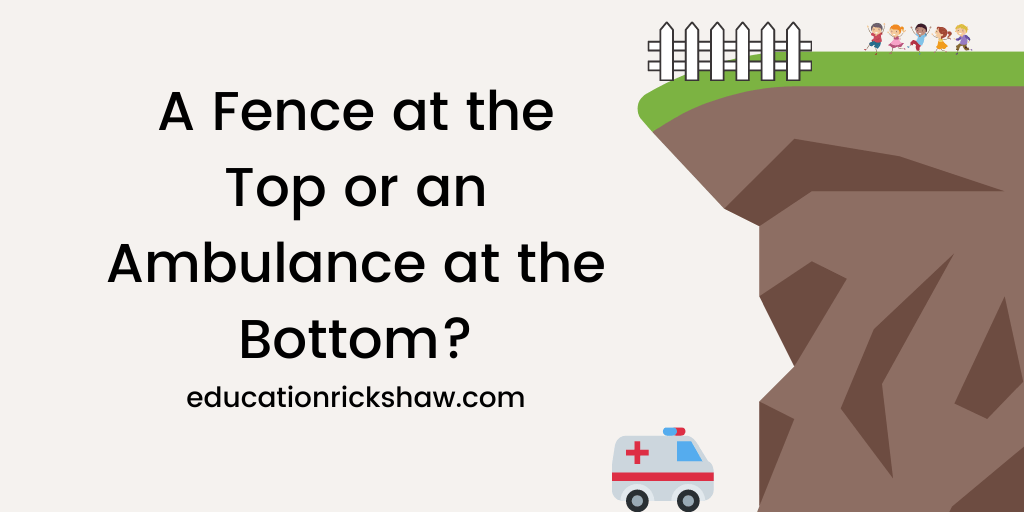 Just a few short years ago, I would have fallen for the arguments in this sort of evidence-free blog post. I would have told you that the best way to “inspire higher order thinking skills” was to allow students to “struggle and fail” with problems and to “meet them where they’re at”, “just in time”. But a closer examination of the evidence has me increasingly skeptical that an ambulance at the bottom of the cliff will ever be superior to a strong fence at the top.