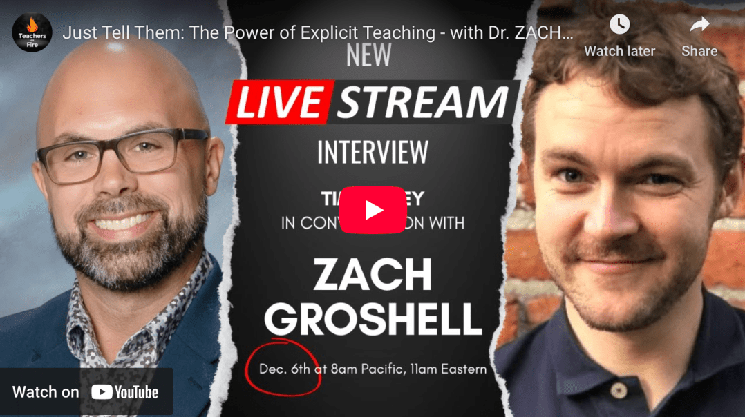 Zach Groshell, PhD is a highly distinguished teacher, instructional coach, and education consultant. Zach is based in the Seattle area and works with schools around the globe to develop high quality instruction based on the science of how kids learn. Zach hosts the podcast, Progressively Incorrect, and is the author of Just Tell Them: The Power of Explanations and Explicit Teaching.