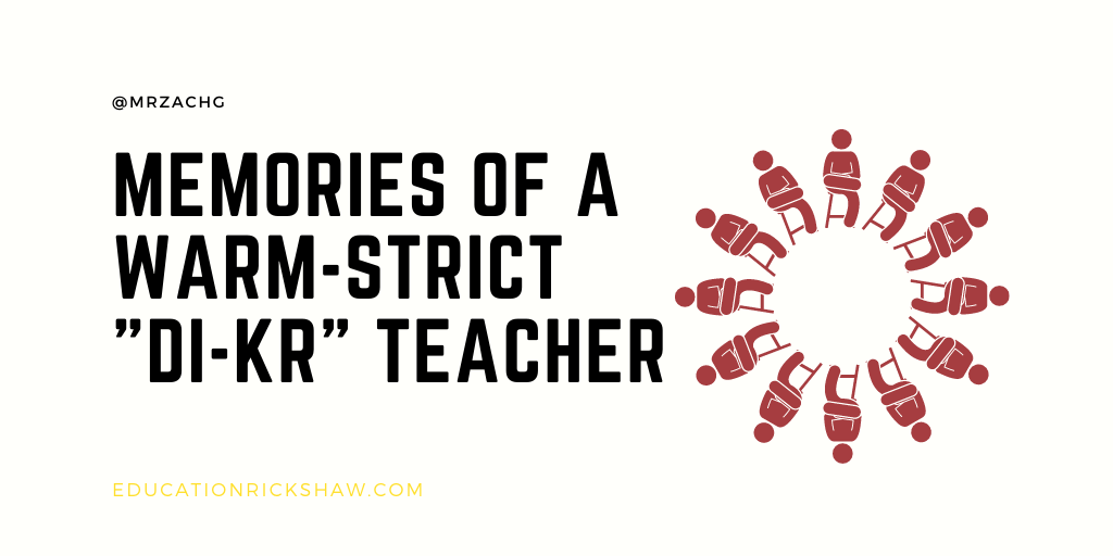 My first grade teacher's name was Ms. Wee. Other than her last name, there wasn't much else funny about her. Ms. Wee was someone I would characterize as a warm-strict, traditional teacher. I still remember the contrast between how carefully she controlled our entry into the classroom on the first day of school compared to … Continue reading Memories of a warm-strict “DI-KR” teacher